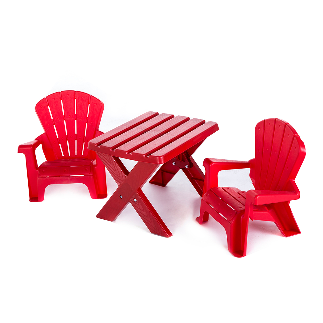 This is a kid tea table, we have a chair to match the table. Both of them is designed with wood grain on the surface. It is knock down, so it will be a good quantity in one container. We use PP material and do several different colors to making it. It can be ued indoor and outdoor.