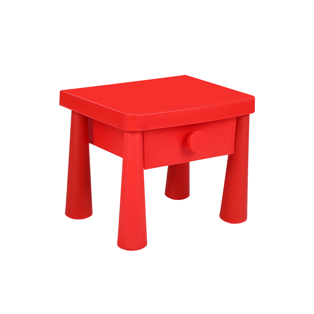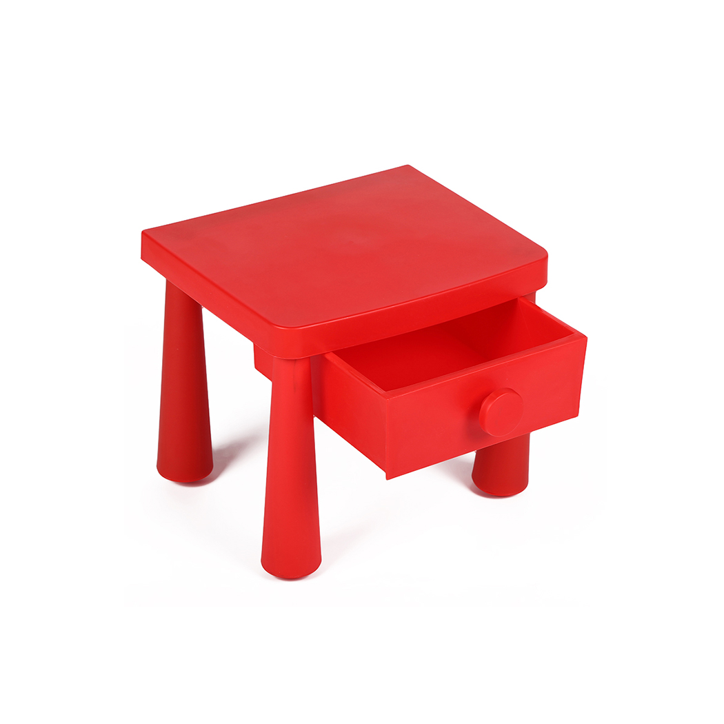 This is a kid table, which is made of PP plastic. We have two heights of the table, which are 39cm and 46.5cm. The table has a drawer, so kid can put his books or toys in it.