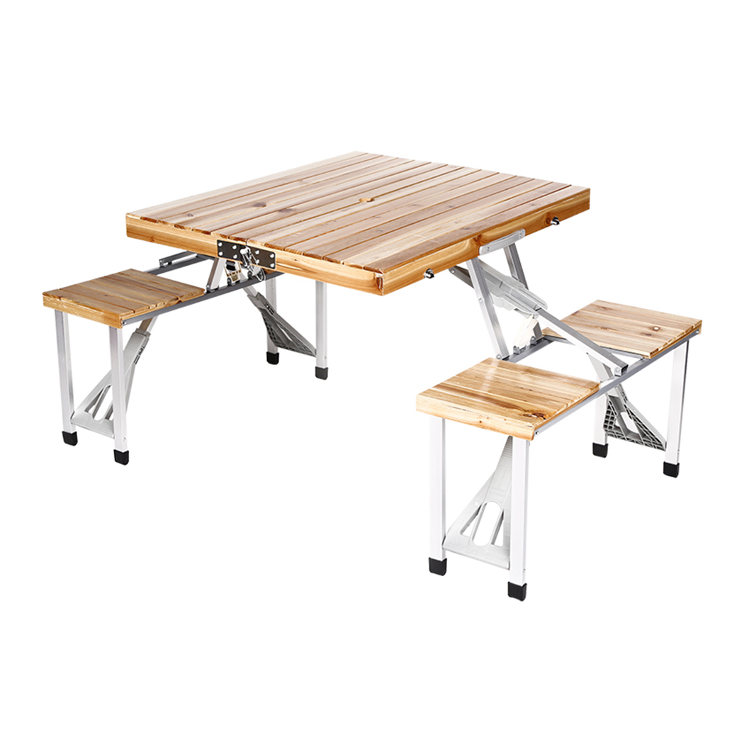 The design of picnic table is very unique,it is a suitcase when it closed. When half open, it is a table. Once it is opened totally, it has one table and four chairs. It just like a transformer. And it is easy to open and folded. Besides, the design of the chair is comfortable, you will never feel tired when you sit on it. The material of the plastic and metal parts are not so heavy for you to carry. Therefore, it is a good option for you to picnic, fishing and have fun with your family and friends.