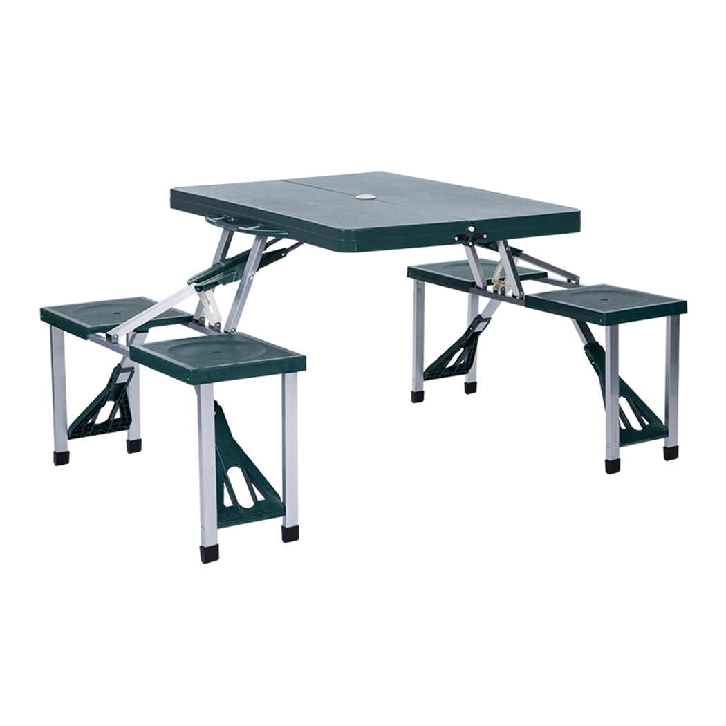 The design of picnic table is very unique,it is a suitcase when it closed. When half open, it is a table. Once it is opened totally, it has one table and four chairs. It just like a transformer. And it is easy to open and folded. Besides, the design of the chair is comfortable, you will never feel tired when you sit on it. The material of the plastic and metal parts are not so heavy for you to carry. Therefore, it is a good option for you to picnic, fishing and have fun with your family and friends.