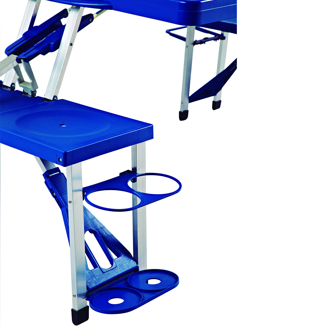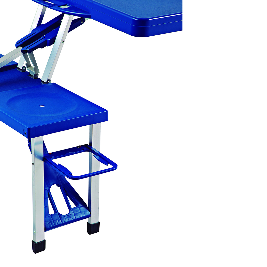 The design of picnic table is very unique,it is a suitcase when it closed. When half open, it is a table. Once it is opened totally, it has one table and four chairs. It just like a transformer. And it is easy to open and folded. Besides, the design of the chair is comfortable, you will never feel tired when you sit on it. The material of the plastic and metal parts are not so heavy for you to carry. Therefore, it is a good option for you to picnic, fishing and have fun with your family and friends.